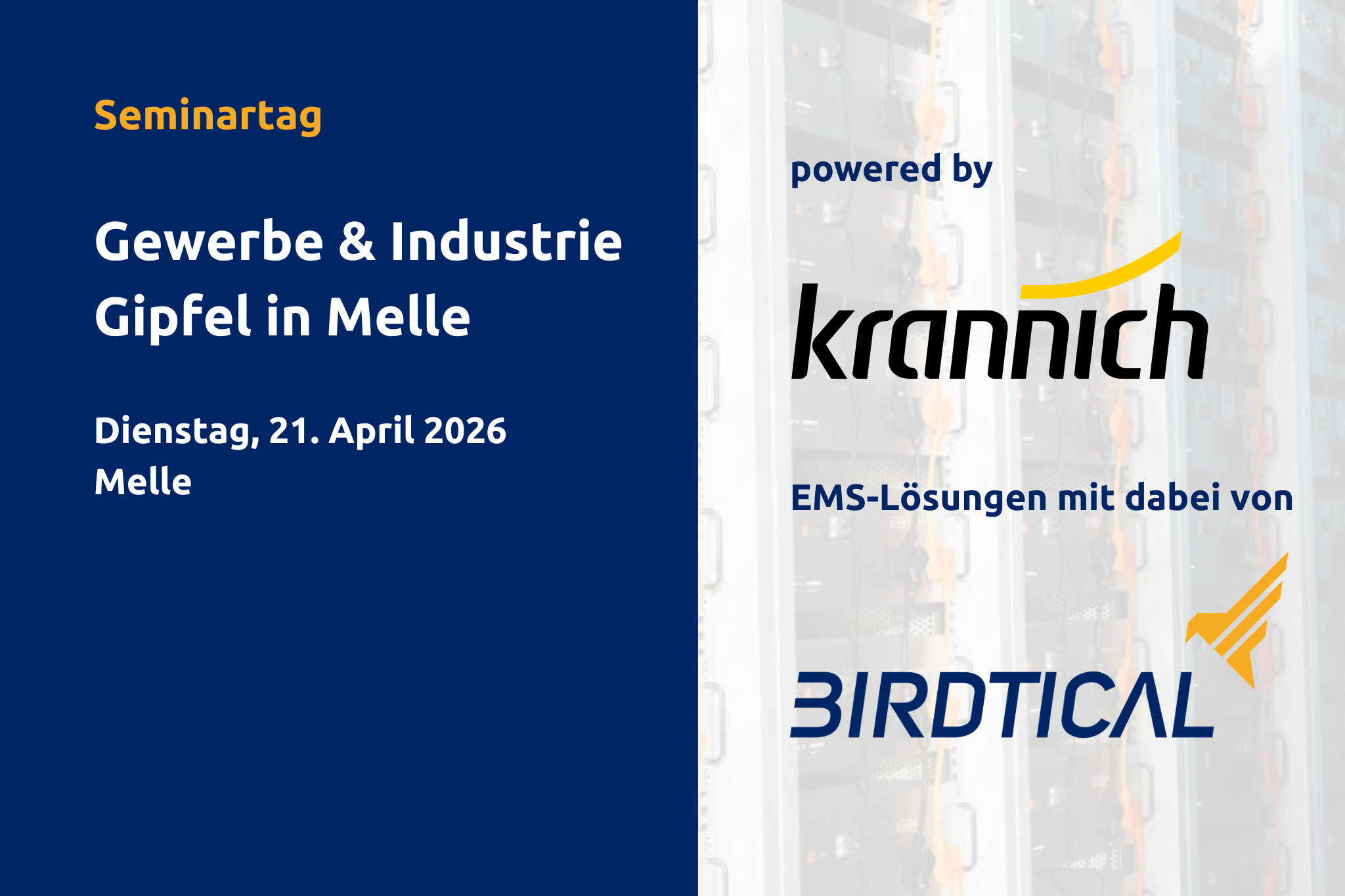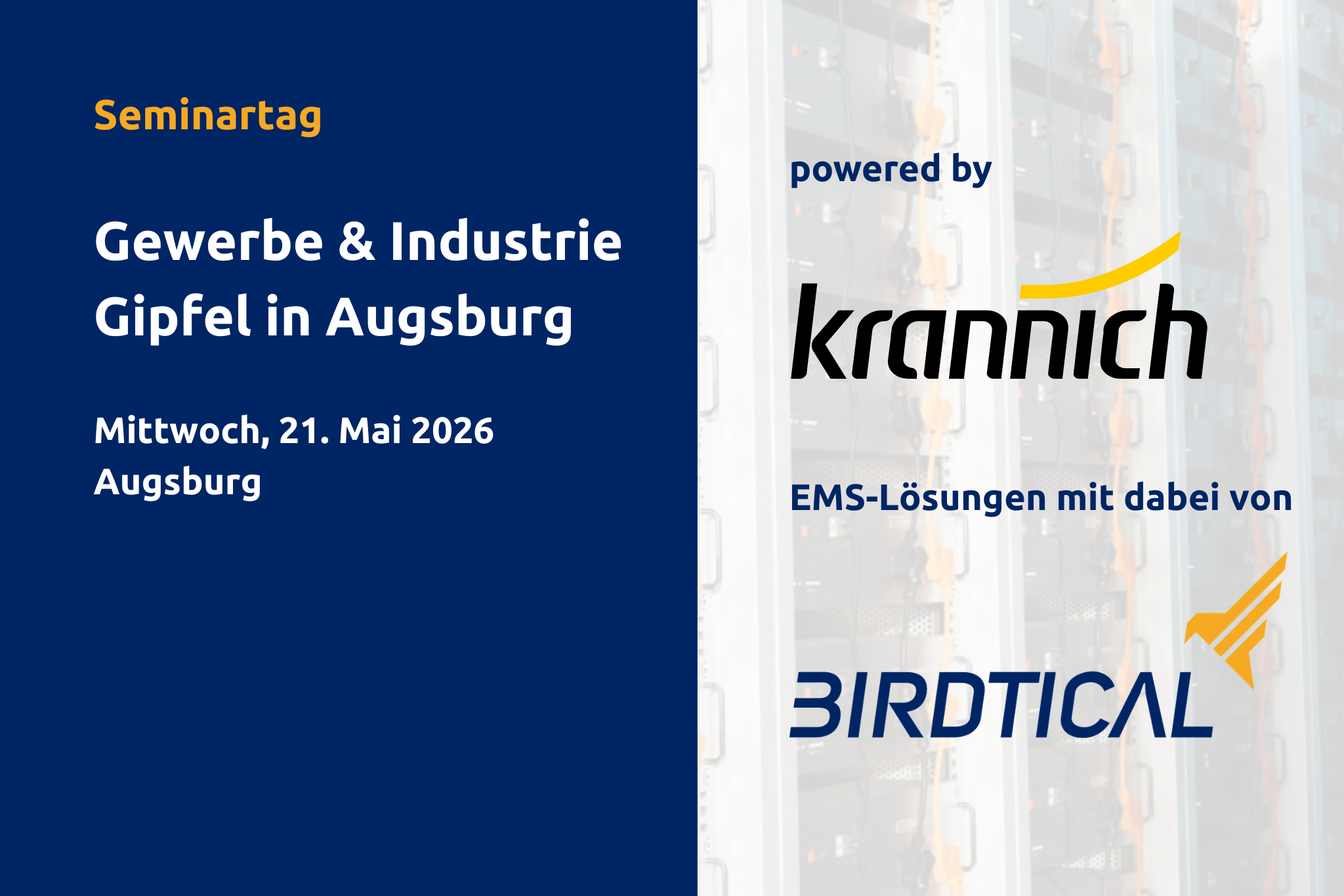 Wir von Birdtical sind mit unseren Energiemanagementlösungen für C&I Gewerbespeicher ebenfalls vor Ort. Erfahren Sie, wie intelligente Eigenverbrauchs- und Vermarktungsstrategien den wirtschaftlichen Hebel von Batteriespeichern voll ausschöpfen. Denn wirtschaftlich werden Speicher erst mit einer durchdachten Multi-Use-Strategie – von Peak Shaving über Eigenverbrauch bis hin zur Grundlage für flexible Vermarktungsstrategien.