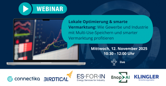 Unter dem Titel: „Lokale Optimierung & smarte Vermarktung: Wie Gewerbe & Industrie mit Multi-Use-Speichern und smarter Vermarktung profitieren“ erhalten die Zuhörer spannenden Einblick in das aktuell sehr viel diskutierte Thema der Optimierung und Vermarktung von Batteriespeichern.
